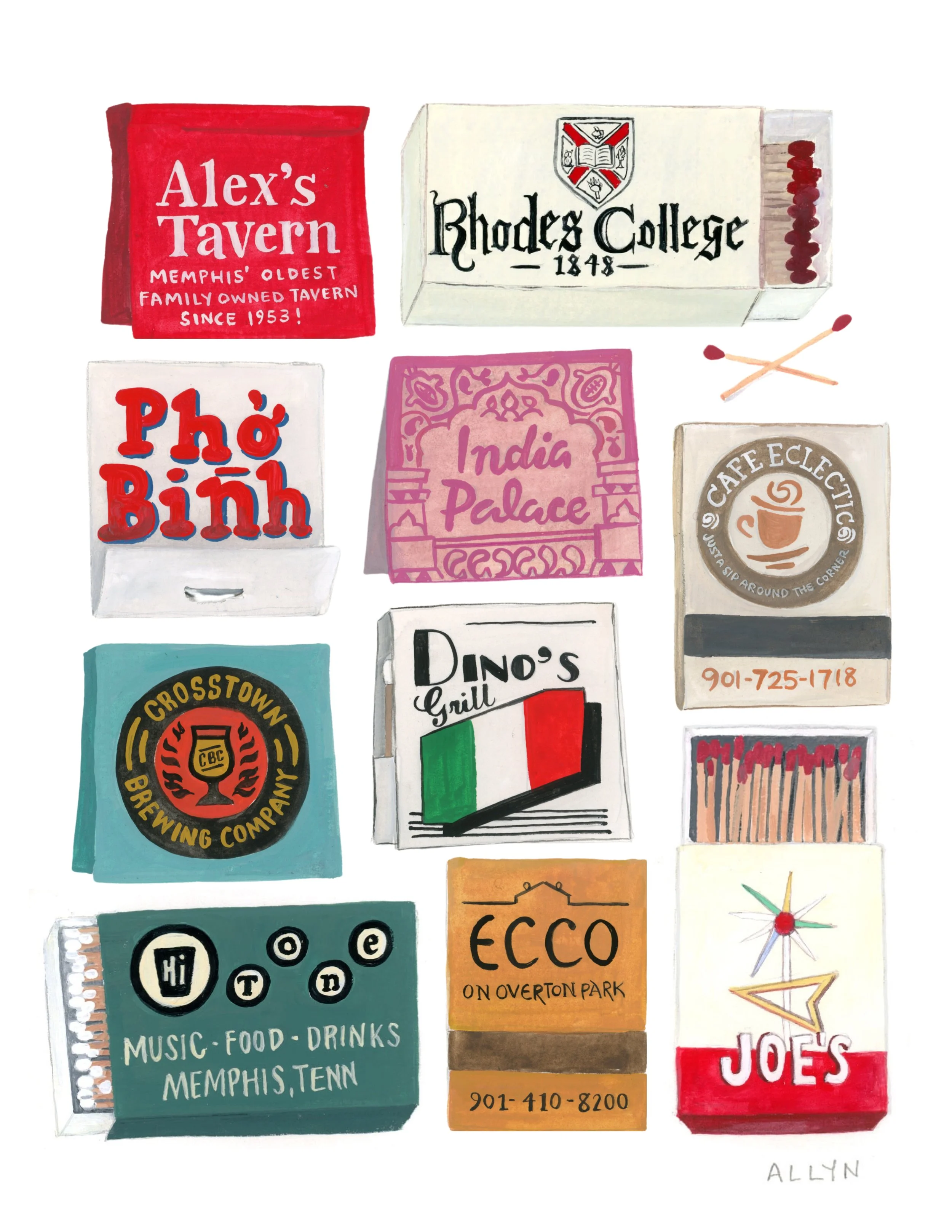 Categories: Select a Category Matchbook Collections Portraiture Matchbook Collections 'A Match Made in Memphis' Print from $30.00 Size: Select Size 11x14 8.5x11 Add To Cart Added! The Cooper Young Collection from $30.00 Size: Select Size 11x14 8.5x11 Add To Cart Added! The Overton Square Collection from $30.00 Size: Select Size 11x14 8.5x11 Add To Cart Added! The Central Gardens Collection from $30.00 Size: Select Size 11x14 8.5x11 Add To Cart Added! The East Memphis Collection from $30.00 Size: Select Size 11x14 8.5x11 Add To Cart Added! The Vollintine-Evergreen Collection from $30.00 Size: Select Size 11x14 8.5x11 Add To Cart Added! The Downtown Collection from $30.00 Size: Select Size 11x14 8.5x11 Add To Cart Added! The Memphis Brews Collection from $30.00 Size: Select Size 11x14 8.5x11 Add To Cart Added! The Oxford Collection from $30.00 Size: Select Size 11x14 8.5x11 Add To Cart Added! The Square Collection $30.00 Add To Cart Added! 'The Arcade' Matchbook Print $15.00 Add To Cart Added! 'Soul & Spirits' Matchbooks $15.00 Add To Cart Added!